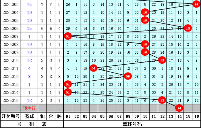 本期蓝球预计出现在:09、11、12、14、15之中,蓝球绝杀8码:02、03、05、06、07、08、13、16。