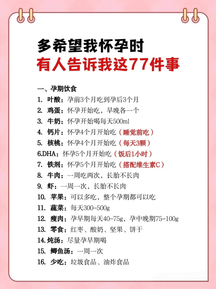 亲爱的准姆妈,孕期不是一场需要完满通过查考的竞赛,而是一段值得细细回味的旅程。这77件事不是必须严格遵命的轨则,而是前东谈主教化的分享,为你提供参考和准备。