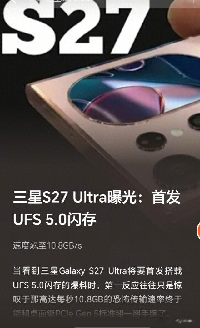 限定2026年4月18日,智高手机行业正迎来一场由存储技巧改换启动的性能翻新。三星电子近期曝光的Galaxy S27 Ultra机型,凭借首发搭载UFS 5.0闪存技巧,成为行业焦点。这一技巧温顺不仅将手机存储速率进步至每秒10.8GB,更符号着出动缔造厚爱迈入与桌面级PCIe Gen 5举止并排的新时期。