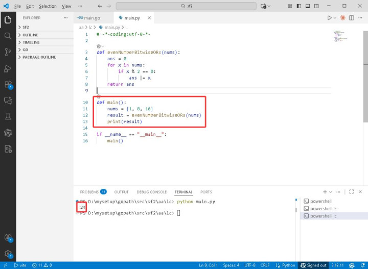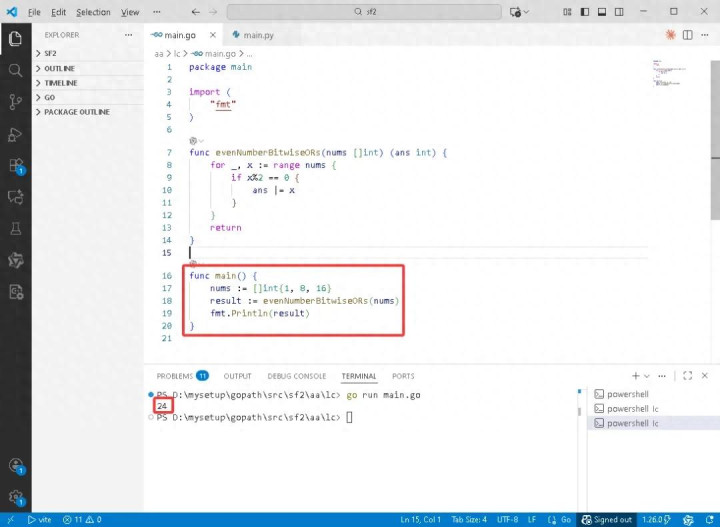 • 遍历第三个元素 x = 16:16 % 2 = 0,是偶数,实践 ans |= 16,即 8 | 16 = 24,ans 更新为 24