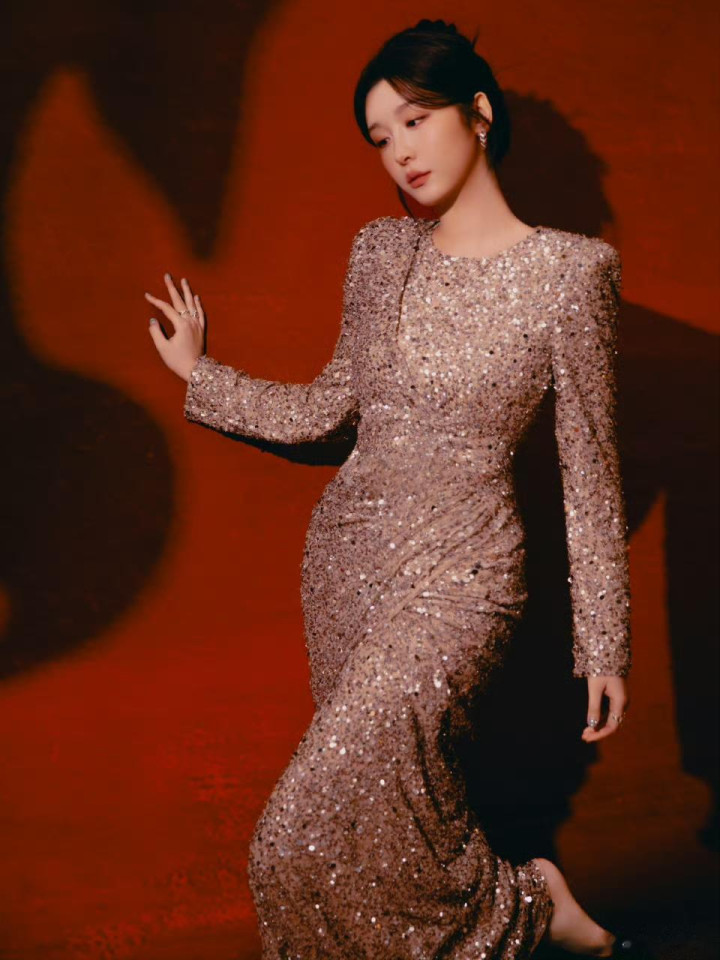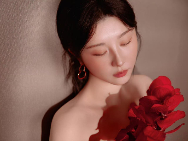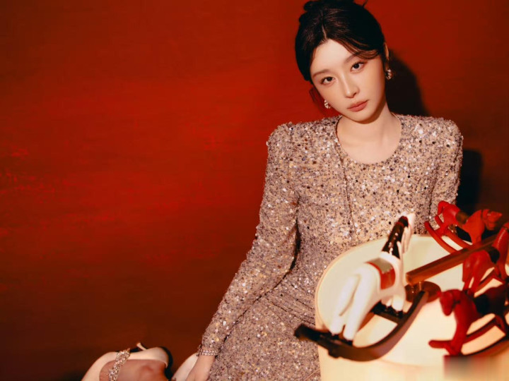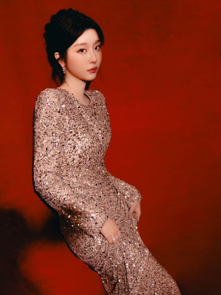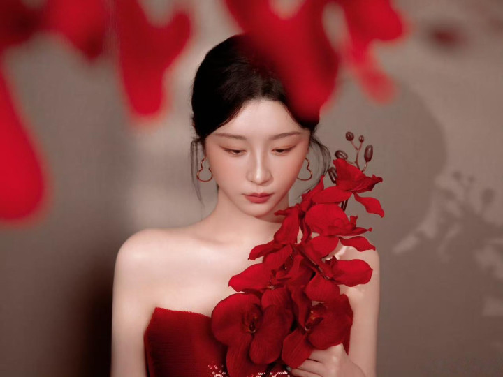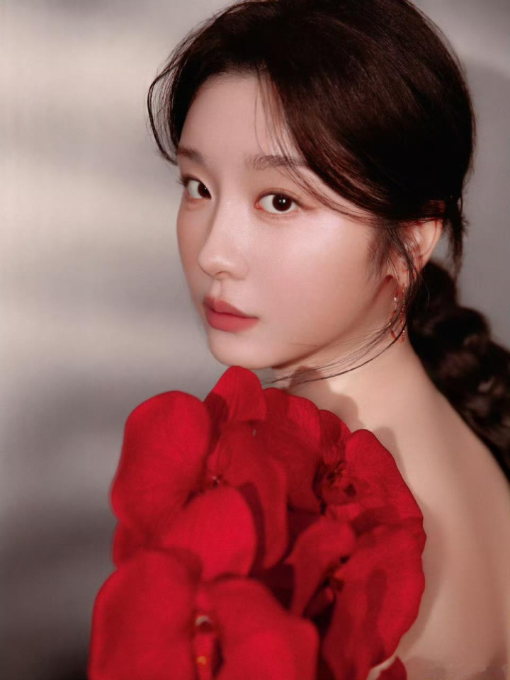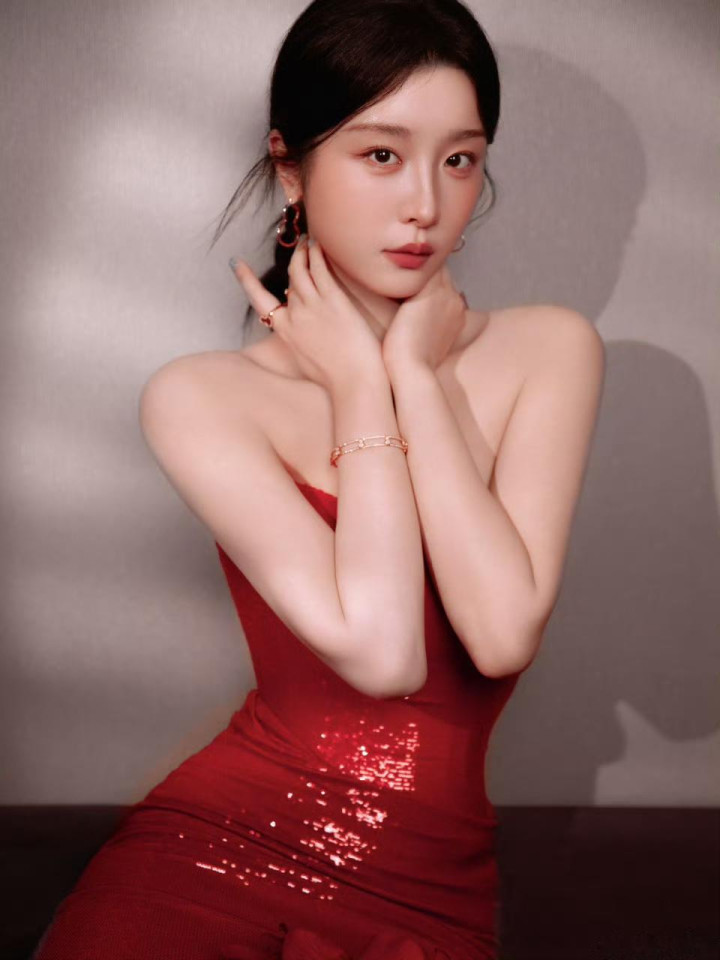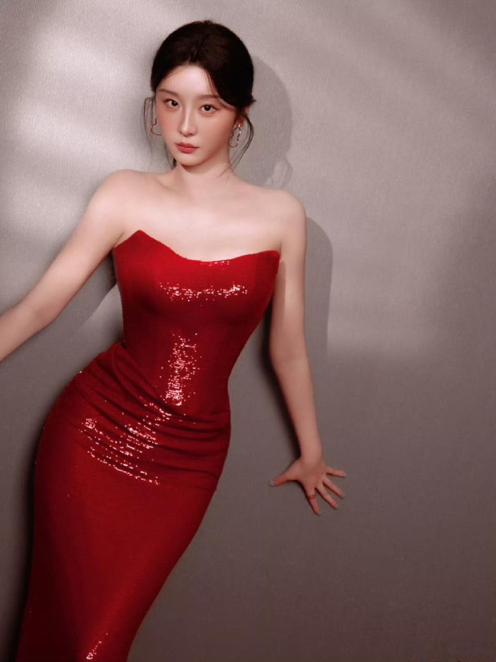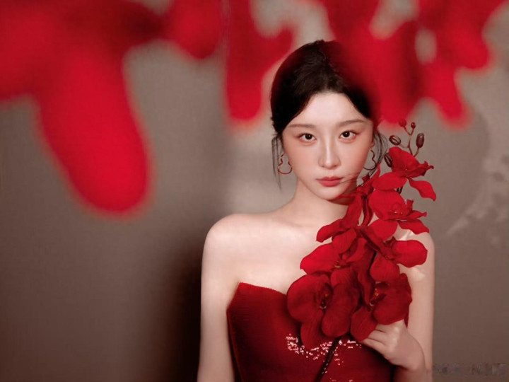 身穿一袭红裙的她秀丽厚情,娇媚动东谈主。