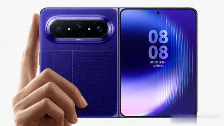 图:Pura X Max折叠形式下的宽屏外不雅,展现高端工艺与大屏上风
