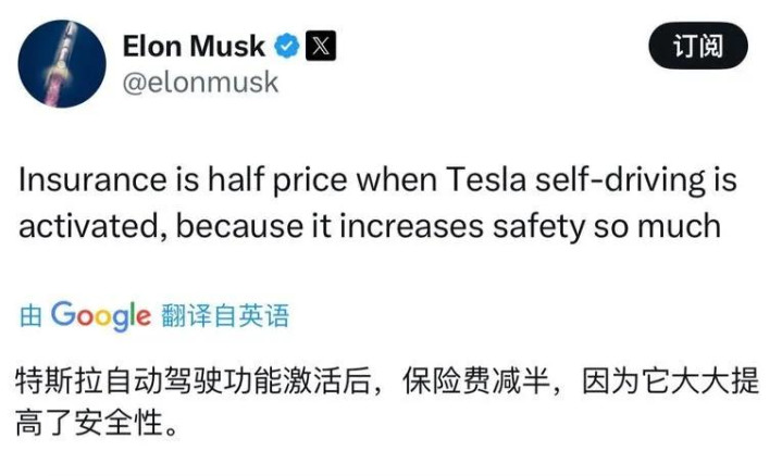 马斯克此前晓示的一件事,透彻点破了“东说念主类驾驶更安全”的坏话:特斯拉和好意思国保障公司Lemonade实现调和,惟有车主激活特斯拉FSD自动驾驶功能,保费凯旋减半。