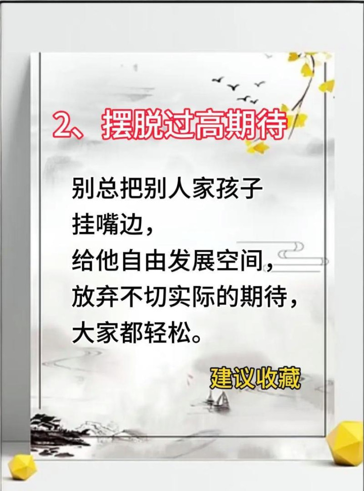 放过孩子,让他按我方的样子长大;放过我方,让我方解脱狂躁的桎梏。少少量期待,多少量包容;少少量内讧,多少量安详。