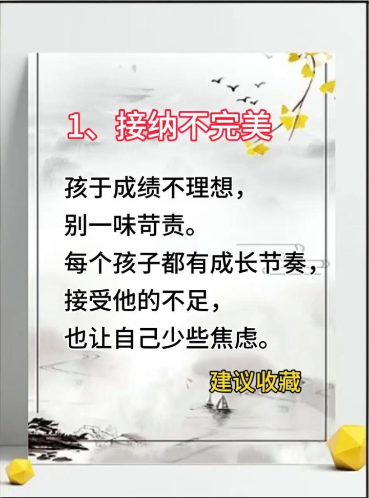 育儿是一场修行,修的不是孩子的完竣,而是父母的心态;养的不是孩子的优秀,而是相互的分缘。咱们仅仅孩子成长路上的伴随者,不是掌控者,不必强行塑造,不必过度紧绷。