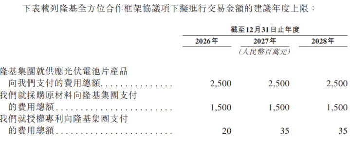 另据招股书,2026年至2028年,英发睿能向隆基绿能供应光伏电板片家具触及来回额上限为25亿元/年,公司向隆基绿能采购原材料触及用度上限均为15亿元/年。