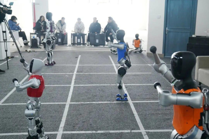 为了攻克这一难题,团队在第一次央视1号厅彩排后,北京pk10官网作念出了一个飞舞决定——径直将舞台配景打包买回,连夜在公司隔壁的空置厂房里,搭建一个1:1归附的排演场面。走进这个复刻的排演场,大地上贴着一个个整皆的1平方米方格子,这是机器东说念主的“专属走位区”。此前,机器东说念主完成后空翻后,总会有小幅的前后调动,在空旷的实验室里细枝末节,但在窄小的春晚舞台上,这小数点偏差都可能酿成诞妄,为此,本事团队定下一个淡漠的律例:机器东说念主翻跟头,必须不出“格子”。