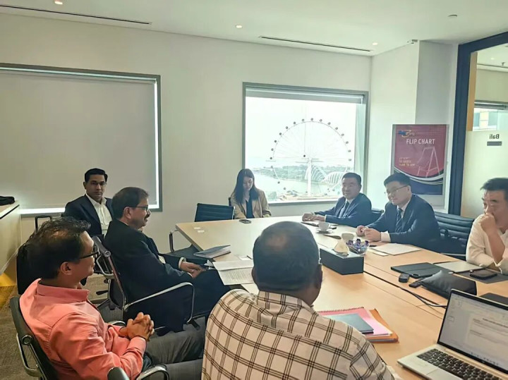 为进一步深化国际战术布局,高质料推动共建“一带沿路”,3月26日至27日,公司董事长孟庆林、副总裁左大勇一滑赴新加坡、马来西亚开展商务检修与调研。期间,孟庆林真切一线调研教导属地化规划责任,并与多家要点客户高层举行座说念交流,围绕深化战术合营、共促绿色低碳发展等事宜真切交换认识、凝合发展共鸣。
